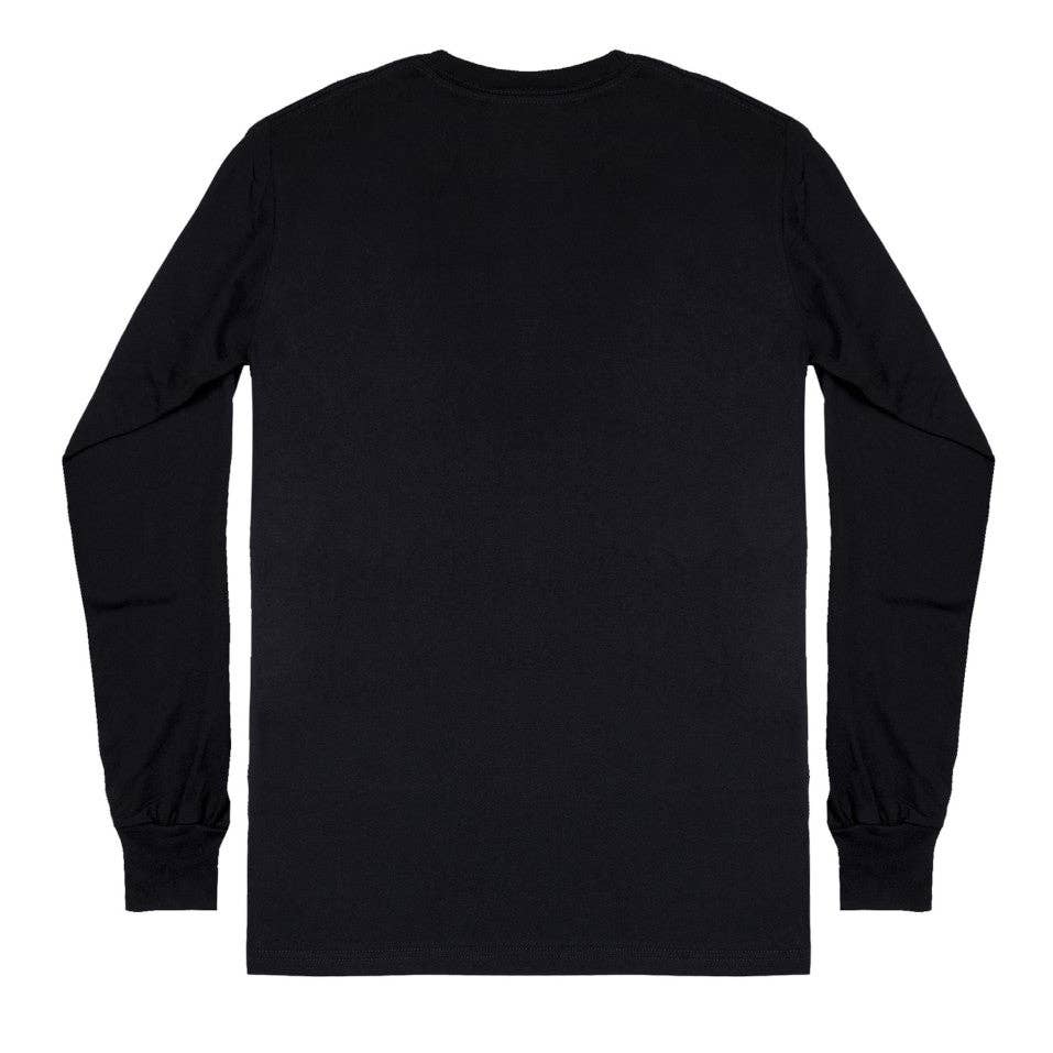 This striking black long sleeve tee features an oversized chest print in white with complementary sleeve prints, creating a bold artistic statement. The plain back design keeps the focus on the stunning front artwork.